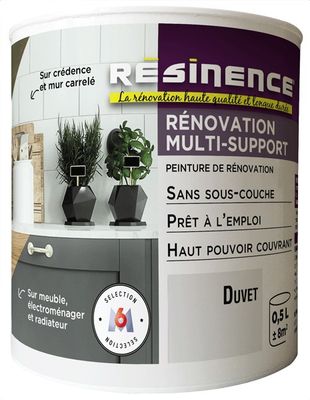 La peinture de rénovation multi-support RESINENCE est une peinture riche en résine, elle vous permettra d'obtenir un rendu parfait et une résistance aux tâches et aux projections d'eau.