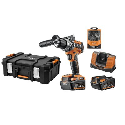 La Perceuse-visseuse à percussion Brushless avec batteries 4,0 Ah et accessoires BSB18C2BL-402TC - AEG est parfaitement adaptée à un usage pour les bricoleurs exigeants comme professionnels. Avec un couple de 65 Nm, elle permet le perçage, vissage et percussion du bois, du métal et du béton.