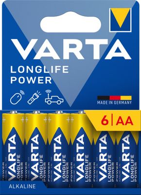 Ces piles alcalines LR06 Longlife Power(AA) par 6 de VARTA, à énergie endurante, sont destinées aux appareils gourmands en énergie, tels que les jouets à piles, les souris sans fil, les torches, etc.
