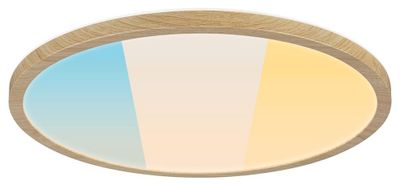 Le plafonnier LED Atria Shine effet bois de PAULMANN est une solution d'éclairage performante et décorative, idéale pour toutes les pièces de la maison, y compris les salles de bains. Son design moderne avec un contour effet bois apporte une touche naturelle et chaleureuse à votre intérieur. Avec son diamètre de 40 cm, il convient parfaitement aux pièces plus spacieuses nécessitant une lumière bien répartie.