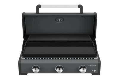 La plancha à gaz 3 brûleurs Sigma 3 Cook CAMPINGAZ offre une double utilisation grâce à son couvercle de cuisson, permettant aussi bien une cuisson indirecte, comparable à celle d'un four, qu'une utilisation en plancha classique. Le couvercle réduit également de moitié le temps de préchauffage. Sa plaque en fonte émaillée assure une excellente répartition de la chaleur pour une cuisson homogène de tous les aliments.