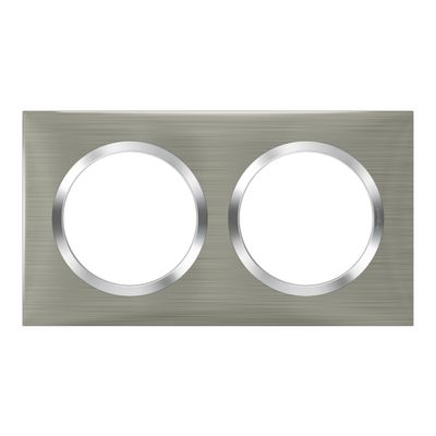 La plaque de finition 2 postes Dooxie de LEGRAND offre un design moderne avec une finition effet inox brossé et une bague effet chrome, apportant une touche élégante à vos installations intérieures. Conçue pour accueillir deux appareillages différents, elle s'intègre parfaitement à la gamme Dooxie, offrant ainsi à la fois protection pour l'installation et une belle finition.
