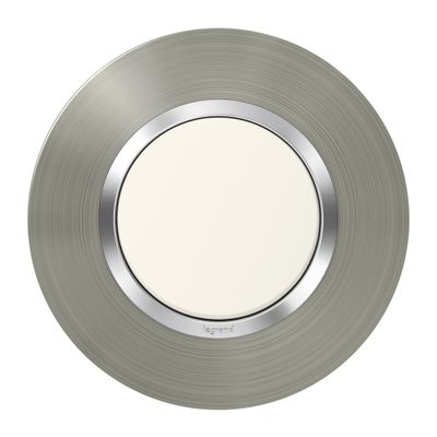 Cette plaque ronde décorative 1 poste finition inox brossé avec bague chromée Dooxie s'adapte sur la gamme d'appareillages Dooxie et permet de réaliser une belle finition sur votre mur.