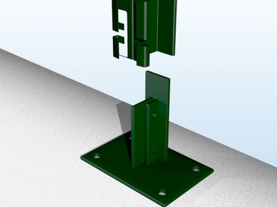 La platine verte pour poteau Titan est utilisée comme support à boulonner sur un muret. Elle permet de fixer un poteau titan.