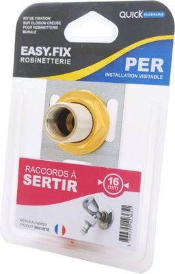 Permet la fixation dans une cloison creuse d'un robinet de Machine à Laver ou de jardin avec du tube PER.