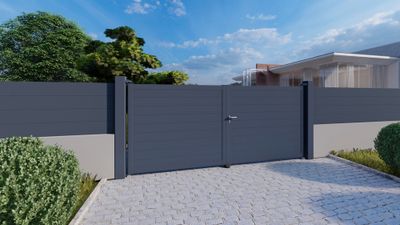 Portail battant Balthazar alu ouverture droite poussant 3m x 1m51 gris COFRECO