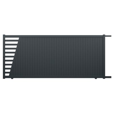 Le portail coulissant PIVOINE, en aluminium gris anthracite, permet de fermer et de sécuriser l'accés à votre propriété de façon esthétique.
