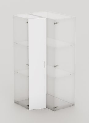 La porte battante d'angle 2012 x 398 mm de la gamme Creo permet de fermer spécifiquement une colonne d'angle de 400 mm de large agrémentée d'un caisson au-dessus ou au-dessous.