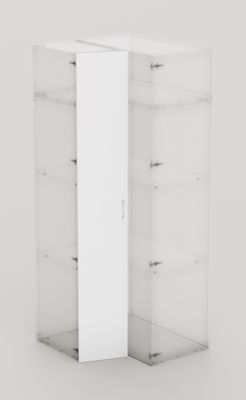 La porte battante d'angle 2396 x 398 mm de la gamme Creo permet de fermer spécifiquement une colonne d'angle de 400 mm de large agrémentée d'un caisson au-dessus ou au-dessous.