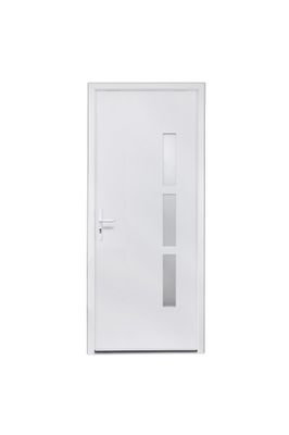 Porte d'entrée moderne blanche permettant l'accès à votre habitation. Avec ce panneau de porte monobloc contemporain, cette porte vous permettra de mieux vous isoler en respectant le meilleur rapport qualité/prix et ne nécessitent que très peu d'entretien. La serrure intérieure/extérieure (poignée non fournie) permettra de sécuriser les accès depuis l'intérieur ou l'extérieur.