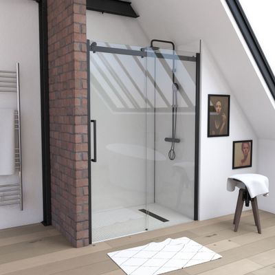Transparente avec des profilés noirs mats, cette paroie de douche au style industriel apporte une touche de modernité à votre salle de bain. Pratique, sa porte en verre trempé (8mm) coulisse facilement grâce à sa poignée en aluminium laqué noir et son roulement à galet. Pour s'adapter à votre utilisation et optimiser l'espace de votre salle de bain, le sens d'ouverture de cette porte de douche est réversible.