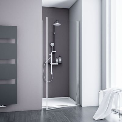 Conçue pour les espaces de douche en niche ou en angle, cette porte de 80 cm de large et 192 cm de haut offre un accès confortable grâce à son ouverture pivotante à 180°. Idéale pour les salles de bains de toute taille, elle allie esthétique et fonctionnalité.