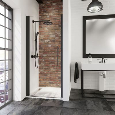 Conçue pour les espaces de douche en niche ou en angle, cette porte de 80 cm de large et 192 cm de haut offre un accès confortable grâce à son ouverture pivotante à 180°. Idéale pour les salles de bains de toute taille, elle allie esthétique et fonctionnalité.