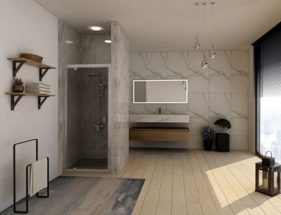 Constituée de verre trempé, cette porte de douche vous garantie durabilité et solidité. En effet, le verre trempé est traité thermiquement pour le rendre plus résistant aux chocs et variations de températures. Avec sa forte épaisseur, le verre de cette paroi de douche est 5 fois plus solide qu'un verre ordinaire.