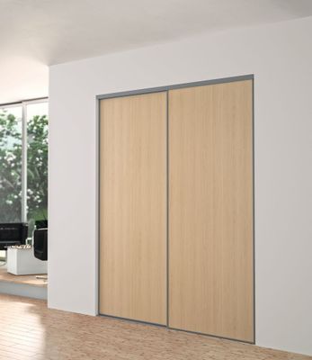 La porte de placard Ykario recoupable de coloris chêne blond est idéale pour l'aménagement d'un placard. Elle coulisse facilement sur des rails (vendus séparément) et permet de dissimuler toutes vos affaires harmonieusement.