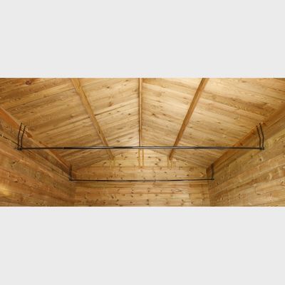 Le porte tout abri de jardin est très utile pour optimiser la surface de rangement de votre abri ou chalet de jardin. Ce système peut être installé au mur ou fixé sur les chevrons. Doté de tubes télescopiques ce dispositif est adaptable de 1,30 m à 3 m et vous permet de ranger échelle, ski, et autres éléments qui occupent de l'espace au sol.