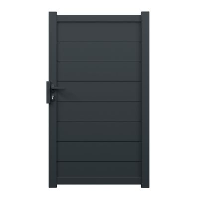 Ce portillon MUGUET, en aluminium gris anthracite, est destiné à un usage piéton et peut être associé au portail de la même gamme.