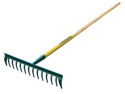 Ce râteau 14 dents rondes manche en bois permet de ramasser les végétaux, feuilles et cailloux, briser les mottes après le bêchage et butter les plantations.