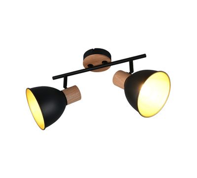 La réglette 2 spots E27 Delume noir et bois 2x40W de REALITY combine design moderne et fonctionnalité. Sa structure en métal noir mat avec finition bois apporte chaleur et élégance à votre intérieur.