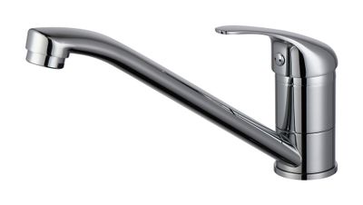 Ce robinet de cuisine Chrome Target 35 de la marque ESSEBAGNO mesure 14 cm. Son long bec pivotant permet de faire passer un récipient ou de faire sa vaisselle confortablement.