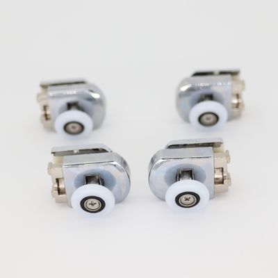 Garantissez la stabilité et le bon fonctionnement de votre porte de douche coulissante grâce à ce lot de 4 roulettes simples avec bouton poussoir. Positionnées en bas de porte, elles sont équipées d'un roulement à billes étanche en acier inoxydable, d'un disque en téflon blanc pour un glissement optimal, et d'un corps chromé résistant. Le bouton poussoir permet une fixation rapide et sans effort sur le rail. Installation facile, sans outil spécifique. Visserie et caches inclus.