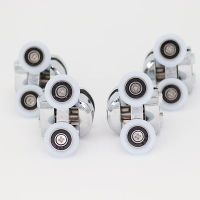 Assurez la fluidité et la sécurité de votre porte de douche avec ce lot de 4 roulettes doubles. Conçues pour un montage en haut de porte, elles disposent d'un roulement à billes étanche en acier inoxydable, d'un disque en téflon blanc pour un glissement silencieux, et d'un corps chromé élégant. Réglables en hauteur via une vis intégrée, elles sont faciles à installer sans outils spécifiques. Visserie et caches inclus.