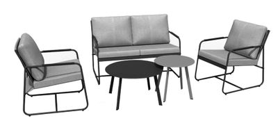 Le salon Bali est un ensemble composé de 1 canapé 2 places, 2 fauteuils et 2 tables basses rondes. Le châssis est en acier époxy cataphorèse grey, et les coussins sont déhoussables en polyester gris. Le produit est à monter.