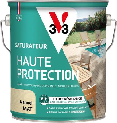 Le SATURATEUR HAUTE PROTECTION V33 s'applique sur toutes les terrasses, decking, caillebotis et mobilier en bois (chaise, table, banc, jardinière...) et sur tous types de bois : européens, exotiques, bois composites et bois traités en autoclave.