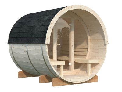 Le sauna Anita PALMAKO se distingue par sa forme en tonneau, optimisant la circulation de l'air et la répartition de la chaleur pour une montée en température homogène. Grâce à son poêle électrique avec pierres, il chauffe rapidement et permet un contrôle précis de la température.