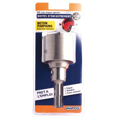 Le kit scie trépan SMARTOOL pour encastrer un boîtier électrique de Ø 68 dans une cloison vous permet d'effectuer des perçages même dans les matériaux les plus résistants comme le béton ou le parpaing.