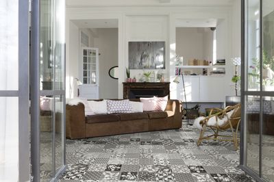 Grâce à son décor imitation carreaux de ciment, il apporte du dynamisme et saura rehausser votre décoration intérieure d'un éclat de modernité. Ce sol mélange parfaitement l'aspect tendance et contemporain avec la simplicité d'installation et d'entretien d'un revêtement vinyle.