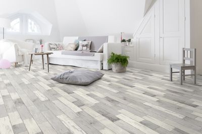 Grâce à son imitation de fines lames en bois vieilli, ce sol crée un effet authentique et éclatant qui soulignera votre décoration. Le bois clair aux nuances de beige et blanc est un allié tendance indémodable, parfait pour réinventer votre intérieur.