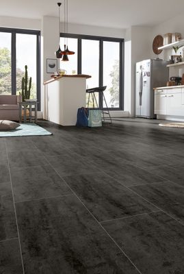 Modernisez votre intérieur grâce à ce revêtement de sol stratifié béton foncé proposé par la marque Kronotex.