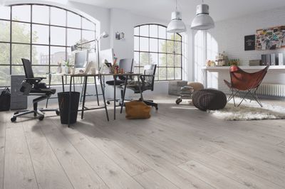 Ce revêtement de sol stratifié décor chêne blanc Everest est le choix idéal pour apporter de la luminosité à votre intérieur.