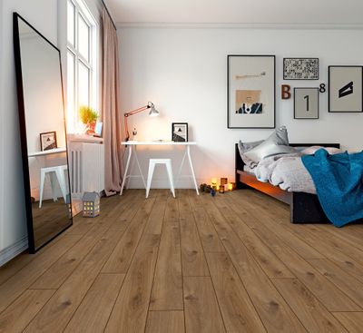 Habillez votre sol avec ce revêtement stratifié aux effets bois de chêne.