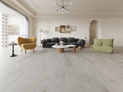 Imitant le bois, ses lames captent les subtilités de ce matériau pour en retranscrire le veinage et la douceur qui le caractérise. Grâce à des teintes légèrement grisées, ce sol offre un rendu lumineux qui viendra agrandir la pièce et ajoutera de la profondeur à votre espace.