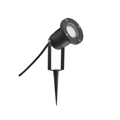 Ce spot à piquer extérieur CAMP est composé en fonte d'aluminium noir résistant aux intempéries et offrant une grande durée de vie. Il propose une protection IP 65 ce qui signifie qu'il est totalement protégé contre les poussières. Protégé contre les jets d'eau de toutes directions à la lance (buse de 6,3 mm, distance 2,5 m à 3 m, débit 12,5 l/min ±5 %).