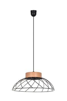 La suspension Kento de COREP allie modernité et élégance grâce à son design conique en métal noir filaire et son cache douille effet bois.