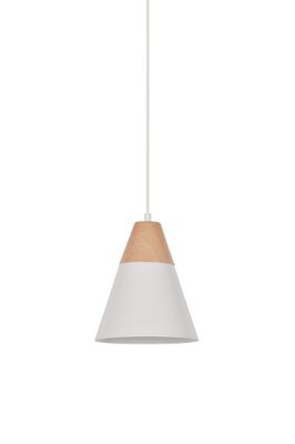 Cette suspension s'intègre parfaitement dans divers environnements grâce à son coloris blanc associé à l'effet bois, créant une ambiance chaleureuse et moderne.