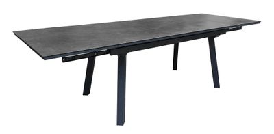 La table AGRA offre un mélange parfait de style et de fonctionnalité. Son châssis en aluminium epoxy graphite assure une durabilité exceptionnelle, tandis que le plateau HPL offre une surface robuste et facile à entretenir. Les pieds de 6x6 cm assurent une stabilité optimale, et les 2 allonges en bout de 50 cm permettent d'ajuster facilement la longueur de la table. Cette table convient pour 6 à 10 personnes, avec des dimensions variables de 150 cm à 250 cm de longueur.