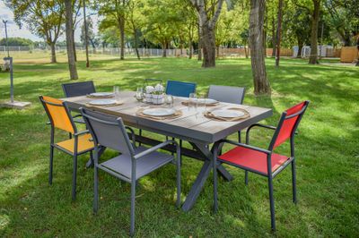 Son design moderne avec son piètement gris anthracite en aluminium et son plateau en céramique s'adaptera à tous les extérieurs en terrasse, sur votre balcon, sous votre pergola ou encore au milieu de votre pelouse. Vous pourrez également l'installer à l'intérieur sous une véranda et ainsi aménager votre jardin d'hiver.