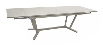 La table Vita crème plateau céramique Dual White PROLOISIRS est l'alliance parfaite d'élégance et de praticité pour vos repas en famille ou entre amis.