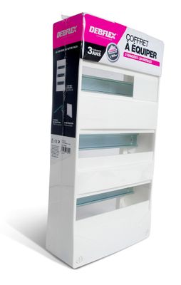 Ce tableau de distribution électrique est à équiper avec des modules de marque DEBFLEX (Disjoncteurs, différentiels, modules de commande...)