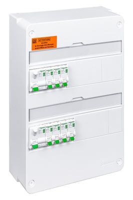 Il comprend 2 rangées de 13 modules, 2 interrupteurs différentiels 63A 30mA (1 type AC et 1 type A) ainsi que 7 disjoncteurs pour une protection complète de vos circuits. Le raccordement au bornier général est facilité par un répartiteur à connexion automatique, et les deux rangées sont reliées via un peigne vertical fourni.