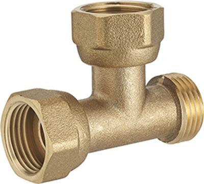 Le té mâle 12 x 17 double écrou libre femelle 15 x 21 est un raccord de plomberie à visser.