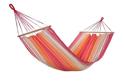 Cette toile d' hamac kolor rouge orange écru ajoutera un brin de couleur à votre extérieur durant l'été.