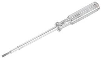 Outil de contrôle pratique, ce tournevis testeur est équipé d'une petite ampoule qui s'allume lorsque la panne est en contact avec un élément sous tension.