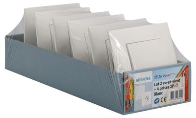 Ce pack de prises promo est composé de 4 prises et 2 va-et-vient blancs de la gamme Delta Viva SIEMENS. Il est idéal pour un chantier.