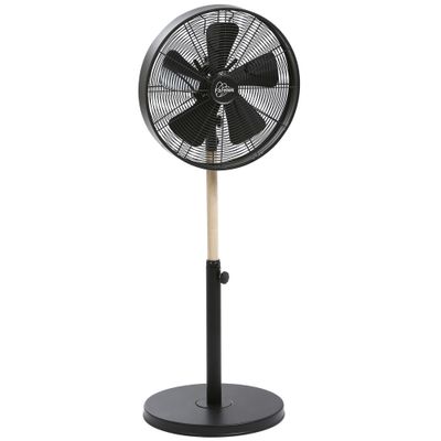 Il dispose de 4 vitesses, d'une fonction oscillation et d'une tête inclinable pour orienter le flux d'air selon vos besoins. Réglable en hauteur jusqu'à 120 cm, il est équipé d'un pied en bois/métal stable et d'une grille métallique.