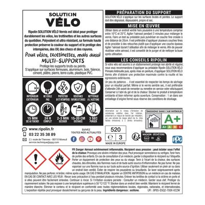 Le vernis multi-supports solution vélo RIPOLIN est idéal pour la protection et l'embellissement des vélos, trottinettes et autre surfaces. Grâce à sa formule innovante, il adhère sur de nombreux matériaux peints ou bruts et offre une protection durable contre les UV, les intempéries, les chocs et les rayures.
